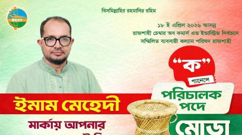 নিজস্ব প্রতিবেদকঃ আগামী ১৮ এপ্রিল অনুষ্ঠিত হতে যাচ্ছে রাজশাহী চেম্বার অব কমার্স অ্যান্ড ইন্ডাস্ট্রির দ্বি-বার্ষিক (২০২৬-২০২৮) নির্বাচন। দীর্ঘ এক যুগেরও বেশি সময় পর অনুষ্ঠিত হতে যাওয়া এ নির্বাচনকে ঘিরে রাজশাহীর ব্যবসায়ী মহলে বিরাজ করছে উৎসবমুখর…