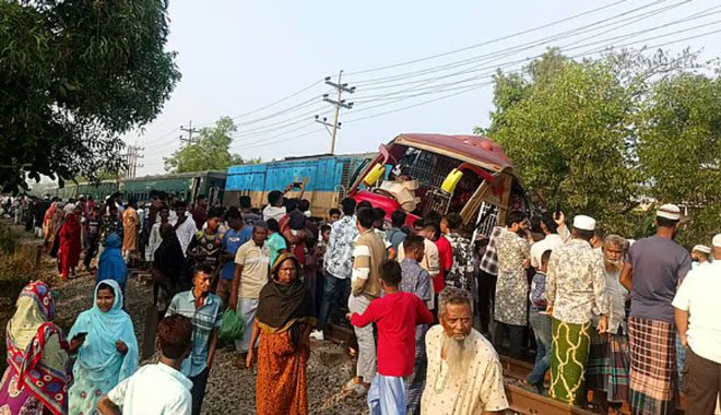 কুমিল্লার পদুয়ার বাজার রেলক্রসিংয়ে যাত্রীবাহী বাসের সঙ্গে মেইল ট্রেনের সংঘর্ষে অন্তত ১২ জন নিহত হয়েছেন। শনিবার (২১ মার্চ) দিবাগত রাত প্রায় ৩টার দিকে এ মর্মান্তিক দুর্ঘটনা ঘটে। নিহতদের মধ্যে ছয়জন পুরুষ ও ছয়জন নারী রয়েছেন।
