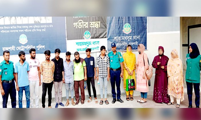 রাজশাহী মহানগরীতে নারী দিয়ে ফাঁসিয়ে অর্থ হাতিয়ে নেওয়ার অভিযোগে ৪ নারীসহ ১২ জনকে গ্রেপ্তার করেছে আরএমপি’র শাহমখদুম থানা পুলিশ। আসামিদের গতকাল বিকালে শাহমখদুম থানার পবা নতুনপাড়া বনলতা আবাসিক এলাকা থেকে গ্রেপ্তার করা হয়।