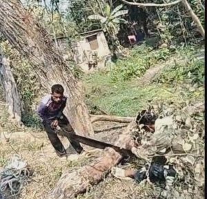 স্থানীয় সূত্রে জানা যায়, সড়কের পাশে থাকা একটি সরকারি গাছ শ্রমিক দিয়ে কেটে ফেলা হয়। অভিযোগ রয়েছে, প্রয়োজনীয় আইনি প্রক্রিয়া অনুসরণ না করেই গাছ কাটার নির্দেশ দেওয়া হয়েছে। ঘটনাস্থলে থাকা কয়েকজন শ্রমিক দাবি করেন, উপজেলা নির্বাহী কর্মকর্তার (ইউএনও) নির্দেশেই তারা গাছটি কাটেন।
