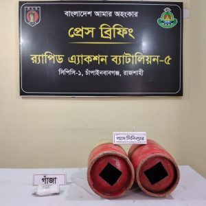 এরই ধারাবাহিকতায় সিপিসি-১, চাঁপাইনবাবগঞ্জ ক্যাম্প, র্যাব-৫, রাজশাহীর একটি আভিযানিক দল ২১ ফেব্রুয়ারী ২০২৪ ইং গোয়েন্দা তথ্যের ভিত্তিতে, চাঁপাইনবাবগঞ্জ জেলার শিবগঞ্জ থানাধীন শ্যামপুর ইউপির গোপালনগর হুদমাপাড়া এলাকায় অভিযান পরিচালনা করে ১। মোঃ জেন্টু (৩৫),পিতা- মৃত আজাহার আলী, মাতা-মোছাঃ কেতামন বিবি,সাং- গোপাল নগর হুদমাপাড়া,থানা- শিবগঞ্জ, জেলা- চাঁপাইনবাবগঞ্জকে ৫০ (পঞ্চাশ)গ্রাম মাদকদ্রব্য গাঁজা সহ হাতেনাতে গ্রেফতার করা হয়।